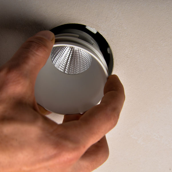 طراحی منحصربفرد چراغ دانلایت بدون لبه تریمو امکان نصب بدنه اصلی چراغ را را با یک چرخش در تریمو مقطع گرد و یا با یک کلیک در تریمو مقطع مربع فراهم میکند.