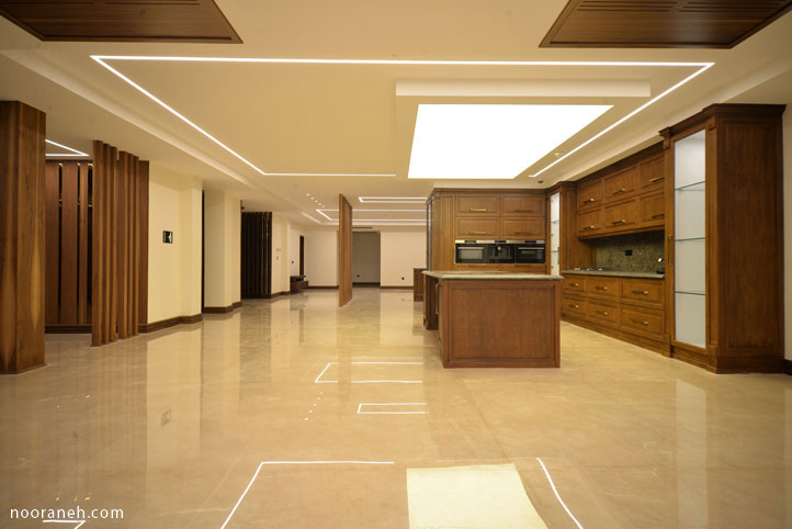 اجرای سیستم روشتایی هوشمند در آپارتمان مسکونی که با استفاده از چراغ های خطی لاین و ورونا، و چراغ دارک لایت تریمو تولیدی صنایع روشنایی نورانه انجام شده است.