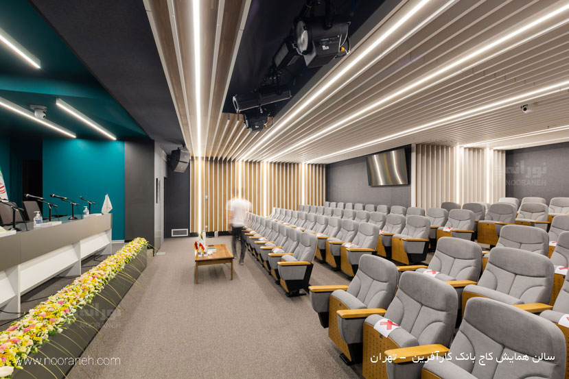 در پروژه سالن همایش کاج بانک کارآفرین، طراحی و تولید چراغهای خطی روکار توسط صنایع روشنایی نورانه انجام گرفته است. این چراغها با بهرهگیری از ماژولهای LED شرکت Tridonic اتریش و استفاده از قطعات باکیفیت اروپایی، از نظر دوام، عملکرد نوری و کیفیت ساخت در سطح بالایی قرار دارند. بهرهگیری از این تجهیزات پیشرفته، ضمن تضمین پایداری نور و یکنواختی روشنایی، بر جلوه معماری فضا نیز تأثیر بسزایی گذاشته است.