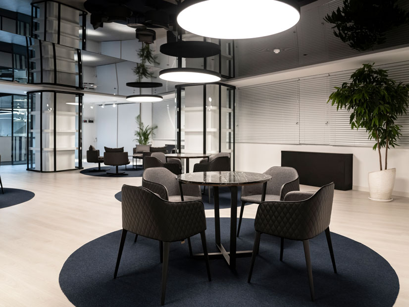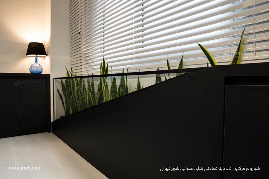 در نورپردازی پروژه ی شوروم مرکزی اتحادیه تعاونی های عمرانی شهر تهران از ترکیب چراغ های گرد لینو، چراغ خطی آویز و چراغ کرو جهت تامین نور عمومی فضا استفاده شده است.