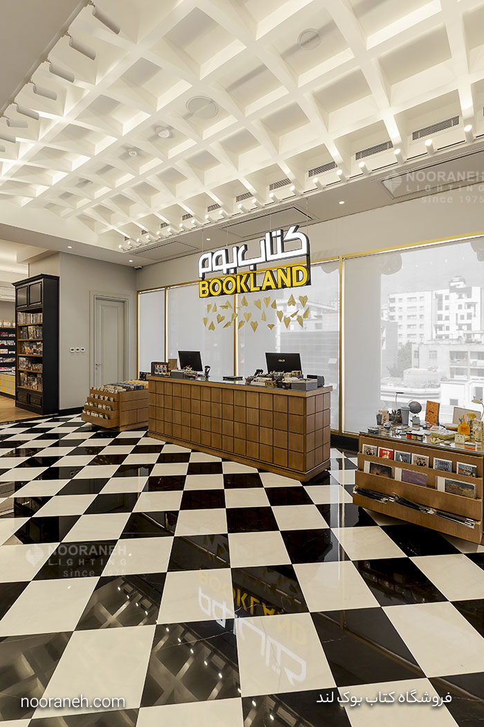 پروژه ی جذاب و متفاوت کتابفروشی بوک لند bookland، در مجتمع مارکیز سعادت آباد واقع شده است. کاربری این پروژه و استفاده از متریال چوب در طراحی داخلی این پروژه باعث شده حس آرامش خاصی در اتمسفر این فضا ایجاد شود. البته نورپردازی این فضا با نور غیر مستقیم و بازتابی از سقف بر آرامش این فضا افزوده است.