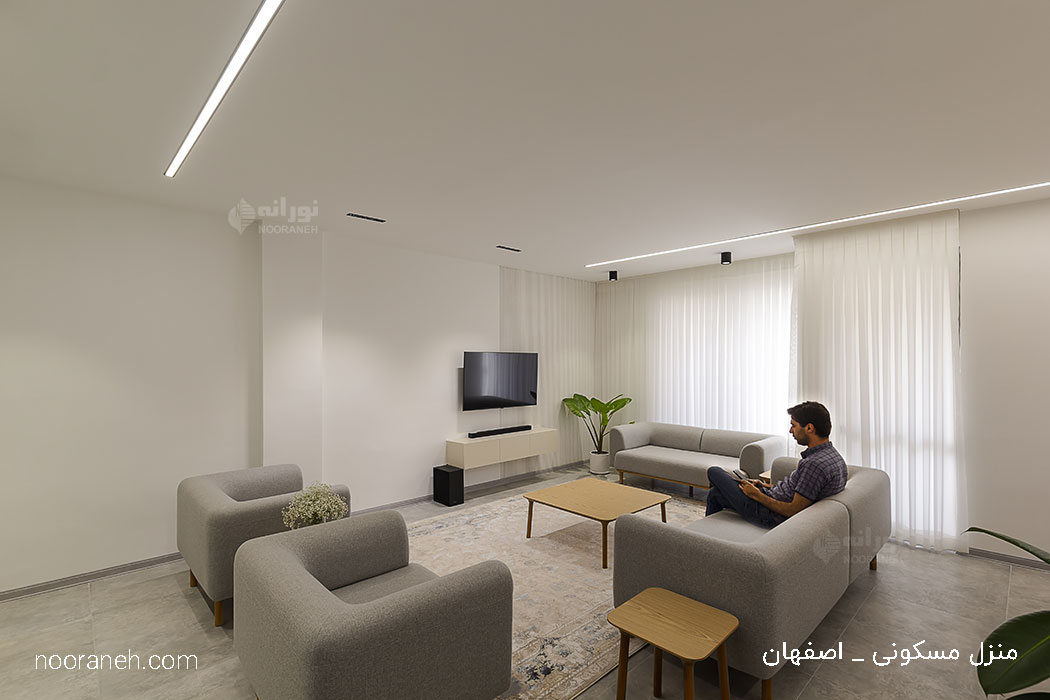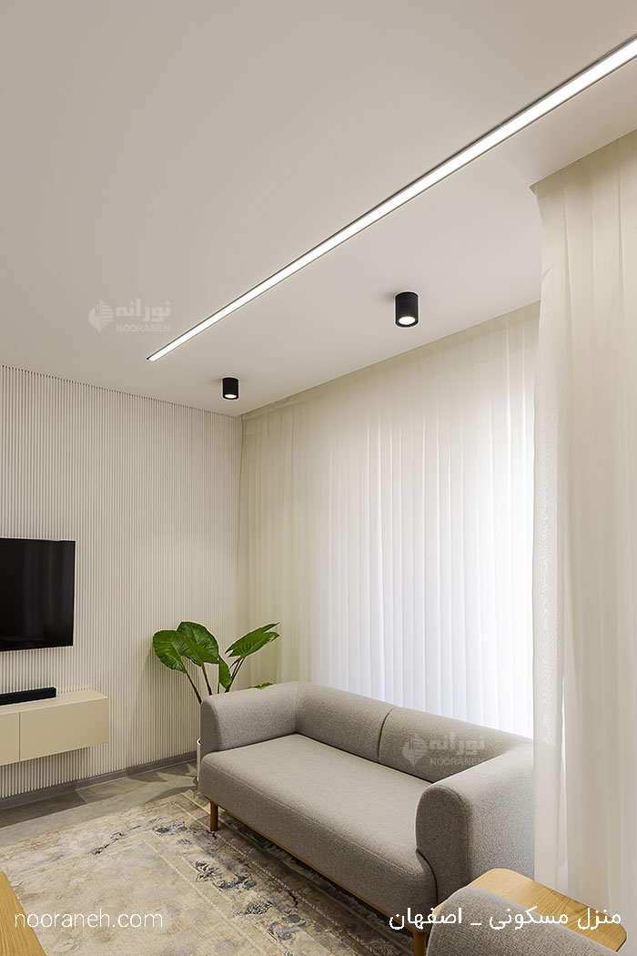 نورپردازی این پروژه توسط چراغ های دکوراتیو آویز مدل مونیکو، ، چراغ سیلندری مدل سیلوا، چراغ دانلایت روکار مدل اکوپلاس و لاین نوری کناف مدل ورونا انجام شده است.