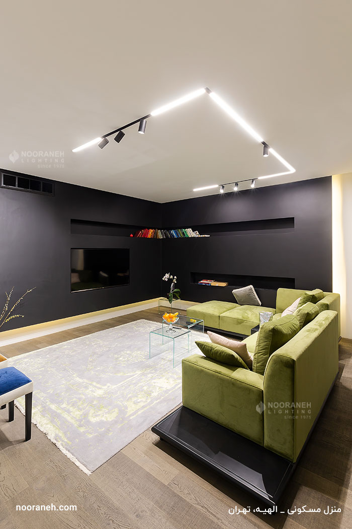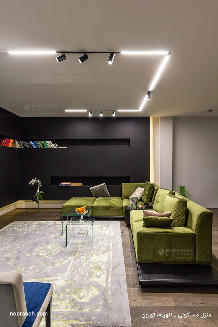 ترکیب چراغ های خطی و اسپات از مدرن ترین راهکارها جهت تامین هم زمان نور عمومی فضا و نور متمرکز می باشد. سیستم اسپات لاین نورانه به همین منظور طراحی شده است که در نورپردازی این پروژه مسکونی مورد استفاده قرار گرفته است.