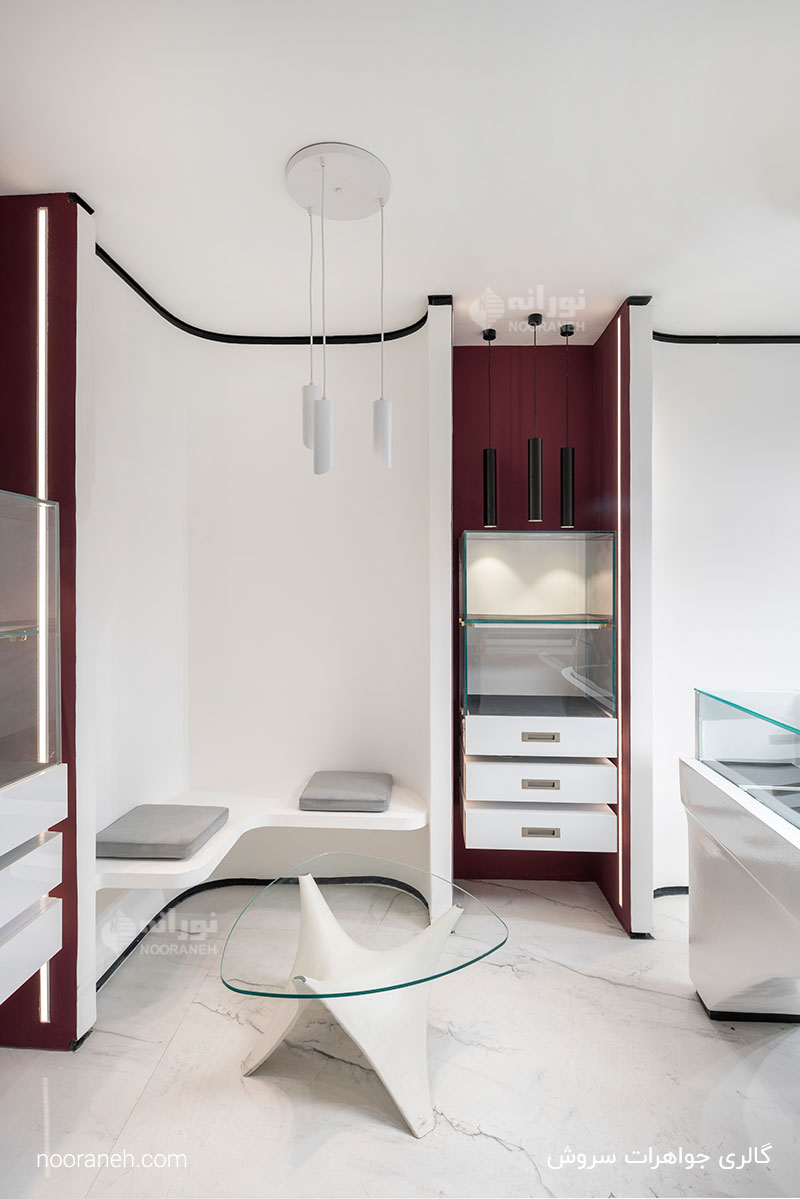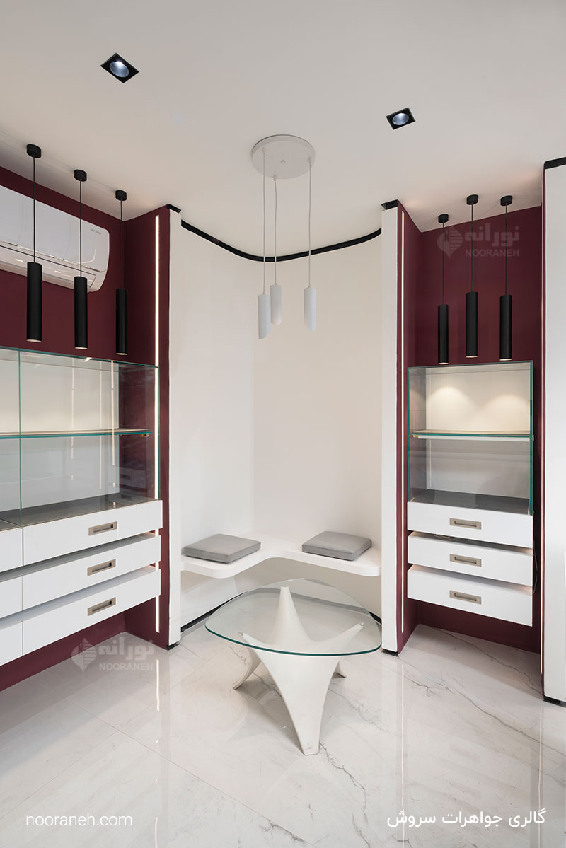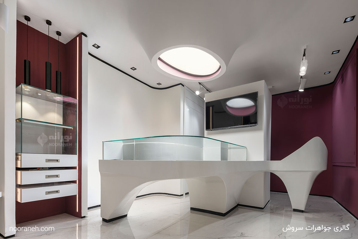 گالری جواهرات سروش واقع در بازار بزرگ تهران با طراحی و اجرای مهندسین مشاور دش و نورپردازی شرکت نورانه است.