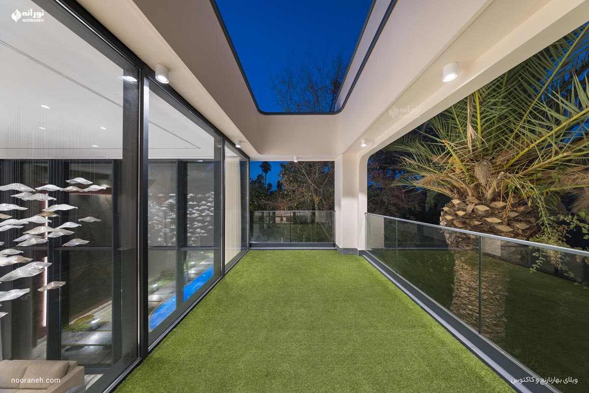 در نهایت، تراس ویلا با چراغهای خطی توکار مدل “ورونا” نورپردازی شده تا هماهنگی مطلوبی میان فضای داخلی و خارجی برقرار شود.