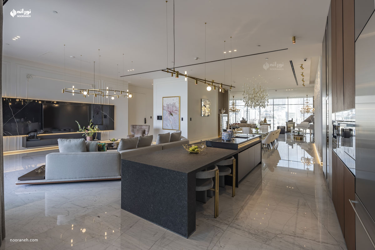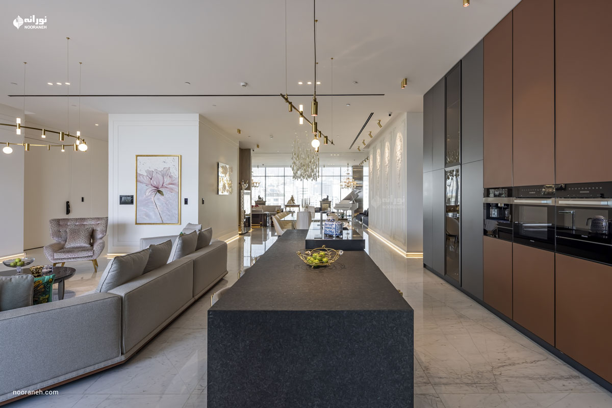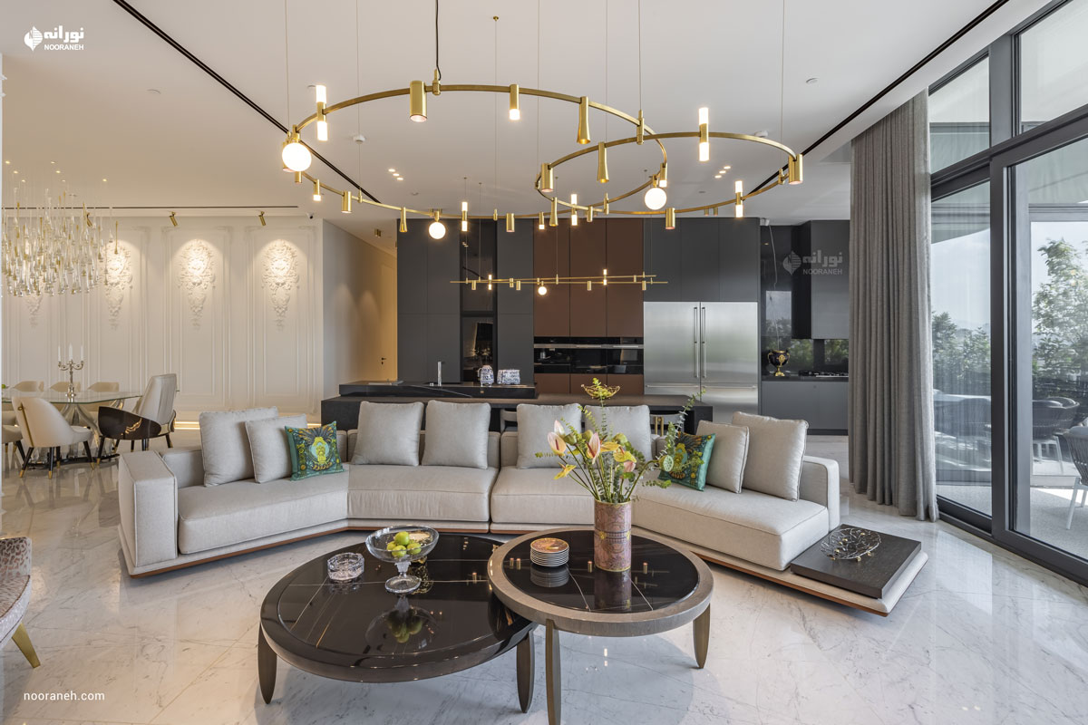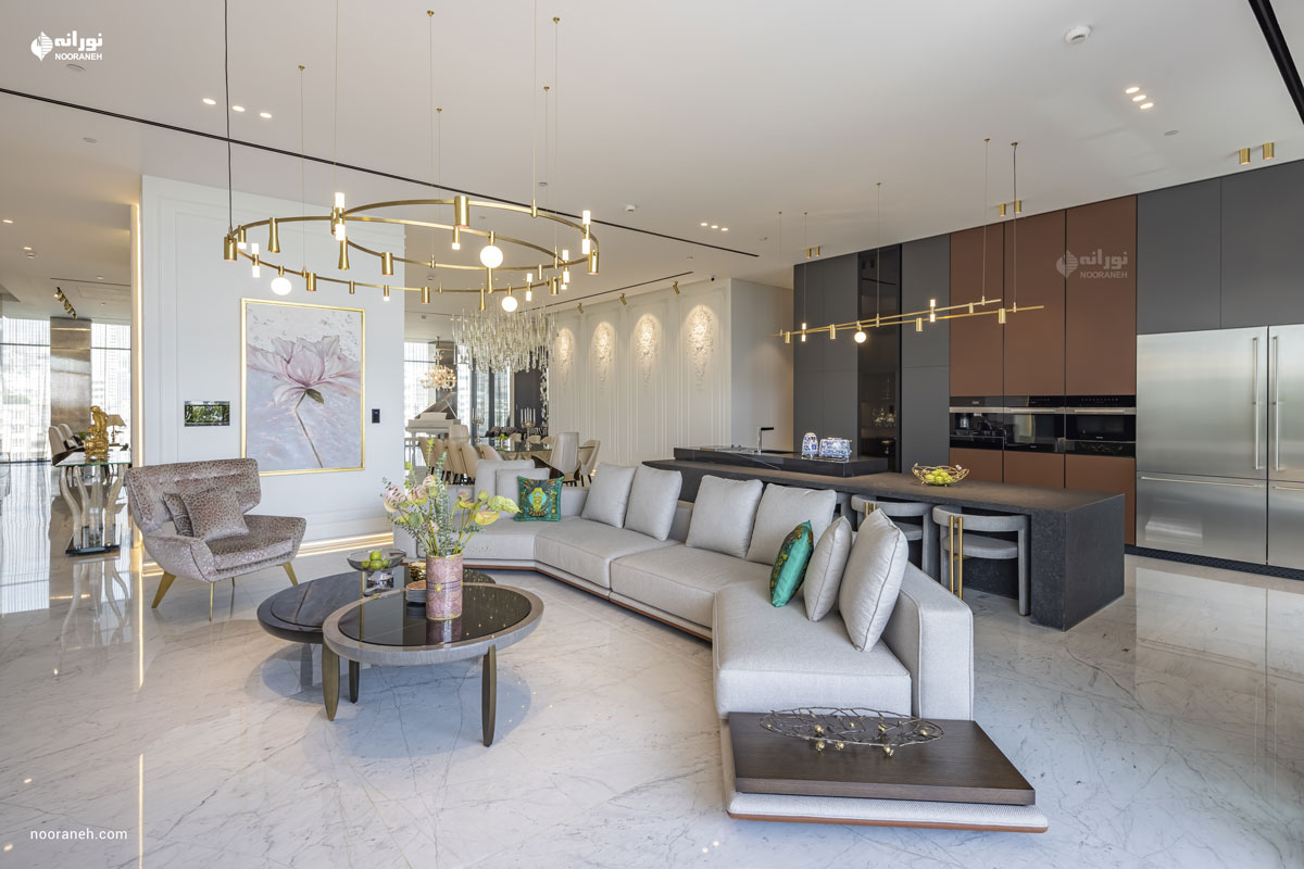 این آپارتمان به مساحت 650 متر مربع در پروژه نسرین واقع در خیابان دیباجی تهران قرار دارد. طراحی داخلی این خانه با رویکردی مدرن و لاکچری انجام شده که مهم ترین ویژگی آن ترکیب هنرمندانه سبک مدرن با هنر کلاسیک است. این پروژه با بهره گیری از جدیدترین متدهای طراحی داخلی و استفاده از جزییات خاص تجربه ای کم نظیر و متفاوت را برای ساکنین خود فراهم کرده است.