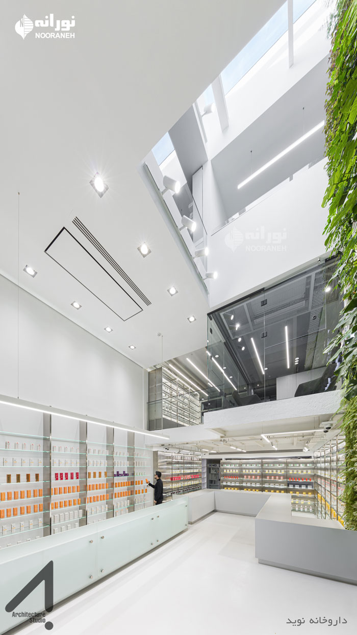 پروژه داروخانه نوید با تلفیق هوشمندانه ای از نور طبیعی، تقسیم بندی دقیق فضایی و توجه به جزئیات معماری و استفاده حداکثری از گیاهان طبیعی، موفق به خلق محیطی روشن، مدرن و دلپذیر گردیده است. این پروژه نشان از تعهد به ارائه خدمات بهداشتی با کیفیت، رعایت استانداردهای معماری بروز و توجه به نیازهای مراجعان دارد. بهره گیری از مصالح با دوام در بخش های مختلف مانند جزئیات قفسه بندی ها و طراحی نمای دعوت کننده، داروخانه نوید را به الگویی برجسته در معماری فضاهای بهداشتی در محدوده تبدیل میکند.