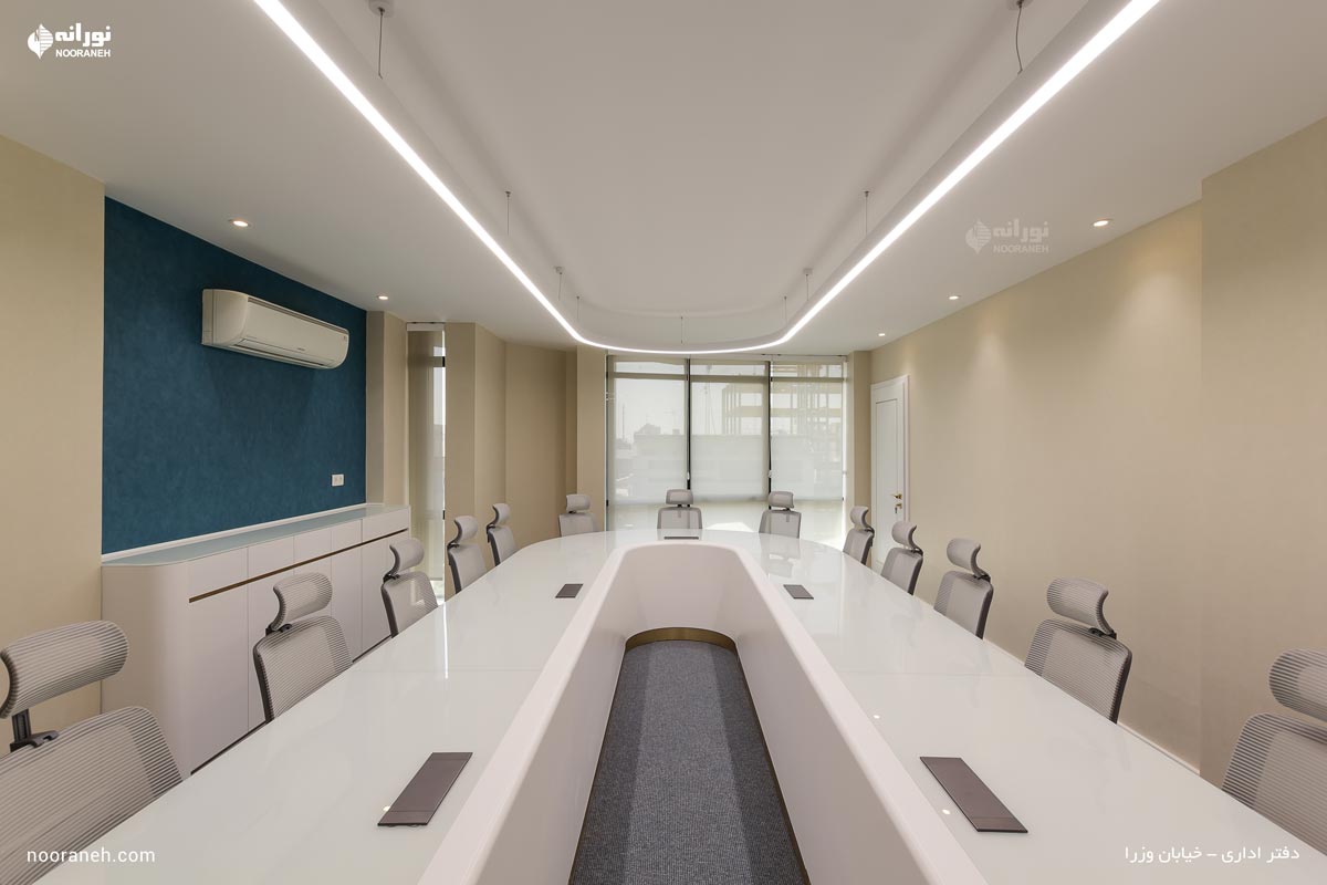 در طراحی نورپردازی دفتر اداری واقع در خیابان وزرا، با استفاده از ترکیبی متنوع از منابع نور خطی، تلاش شده تا فضایی مدرن، کاربردی و چشمنواز خلق شود.