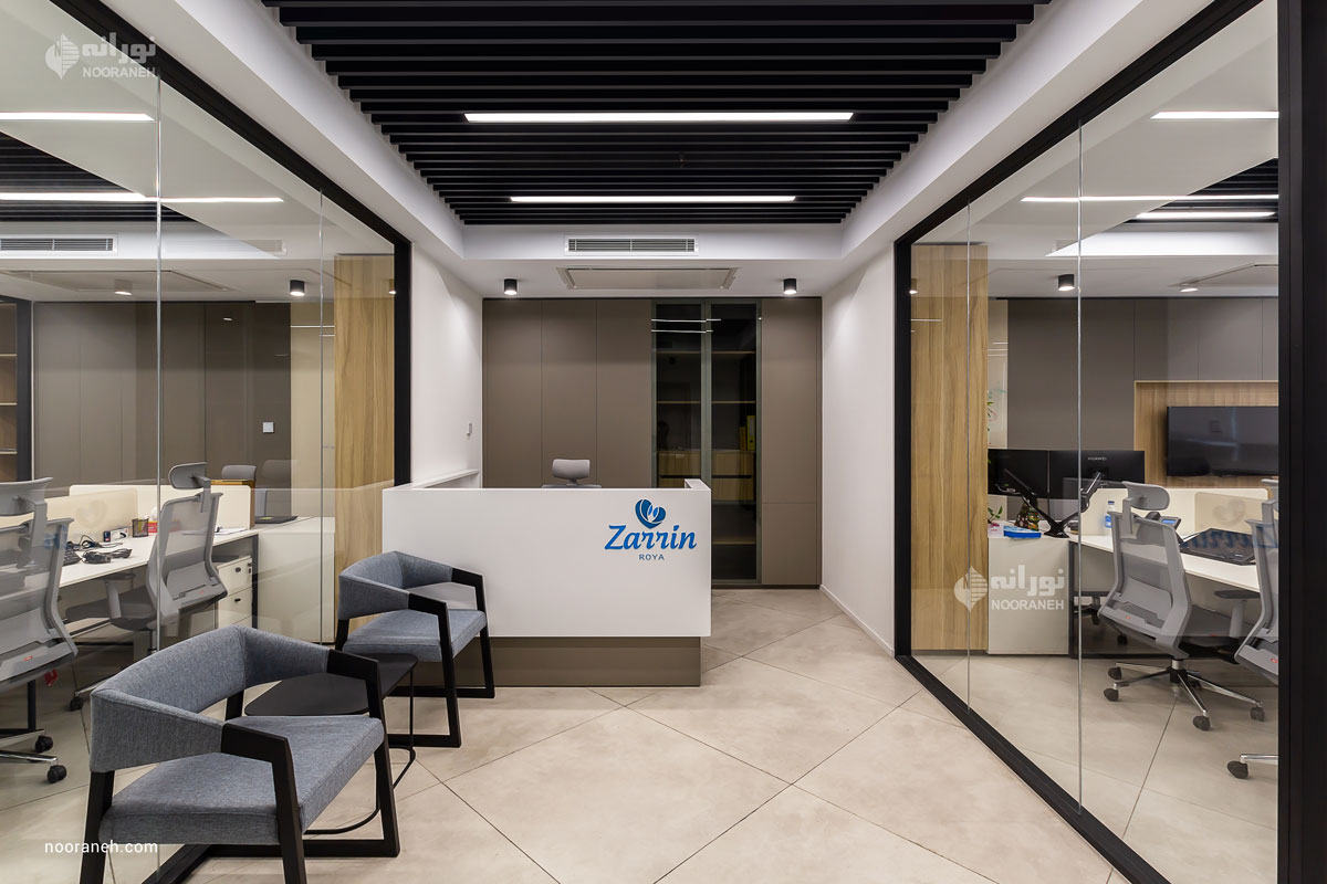 گروه زرین از سال ۱۳۶۸ کار خود را در حوزهی تولید ظروف پلاستیکی تغذیه کودکان و دیگر ملزومات بهداشتی و پلاستیکی آغاز کرد و در سال ۱۳۷۹ با تولید پوشک بچه فعالیت خود را در صنایع سلولزی گسترش داد. در تامین روشنایی دفتر اداری زرین رویا از چراغ خطی در لوور ها استفاده شده است که علاوه بر نور عمومی به حس زیبایی شنایی فضا نیز کمک کرده است. همچنین از چراغ های سیلندری اکو پلاس نورانه نیز در سقف استفاده شده است که نور تکمیلی فضا را تامین می کند.